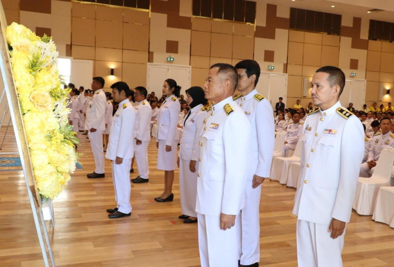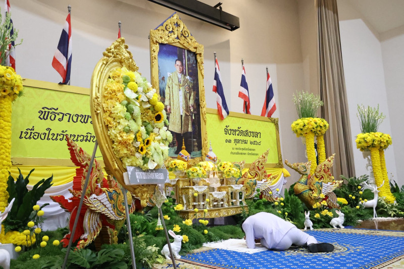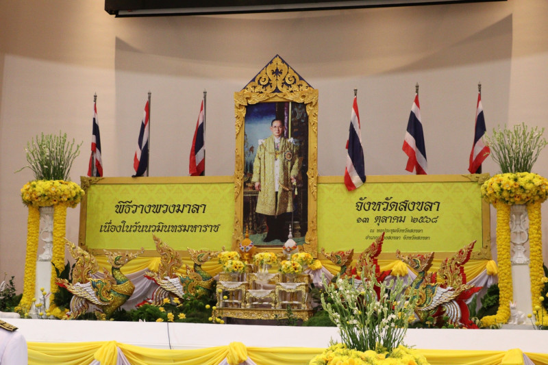 วันที่ 13 ตุลาคม 2568 เวลา 10.00 น. นายโชตินรินทร์ เกิดสม ผู้ว่าราชการจังหวัดสงขลา เป็นประธานในพิธีวางพวงมาลาเบื้องหน้าพระบรมฉายาลักษณ์ พระบาทสมเด็จพระบรมชนกาธิเบศร มหาภูมิพลอดุลยเดชมหาราช บรมนาถบพิตร เนื่องใน “วันนวมินทรมหาราช” ประจำปี 2568 เพื่อแสดงความจงรักภักดีและน้อมรำลึกในพระมหากรุณาธิคุณอันหาที่สุดมิได้ โดยมีนายกุหลาบ สภาพันธ์ ผู้อำนวยการศูนย์ถ่ายทอดเทคโนโลยีการสหกรณ์ที่ 18 นายพิเชฐ นิลวานิช นักทรัพยากรบุคคลชำนาญการ และนายธีรพงธ์ อินทร์จันทร์ เจ้าพนักงานการเงินและบัญชี พร้อมด้วยหัวหน้าส่วนราชการ ข้าราชการพลเรือน ตุลาการ ทหาร ตำรวจ องค์กรปกครองส่วนท้องถิ่น ภาคเอกชน และรัฐวิสาหกิจ เข้าร่วมในพิธีด้วยความสำนึกในพระมหากรุณาธิคุณ และความจงรักภักดีต่อพระองค์ท่านอย่างพร้อมเพรียง ณ หอประชุมศาลากลางจังหวัดสงขลา