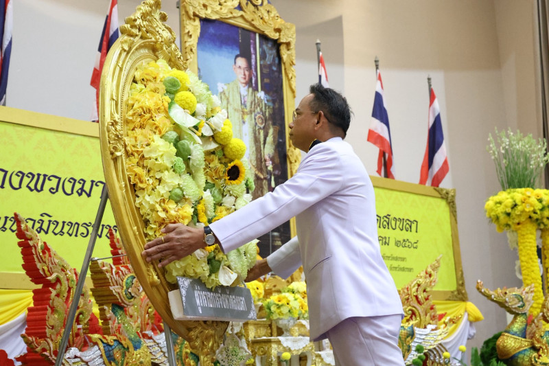 ในโอกาสนี้ นายโชตินรินทร์ เกิดสม ผู้ว่าราชการจังหวัดสงขลา ได้กล่าวน้อมรำลึกในพระมหากรุณาธิคุณ โดยมีใจความตอนหนึ่งว่า “ตลอดระยะเวลากว่า 70 ปีแห่งรัชสมัย พระบาทสมเด็จพระบรมชนกาธิเบศร มหาภูมิพลอดุลยเดชมหาราช บรมนาถบพิตร ได้ทรงอุทิศพระวรกายและพระสติปัญญาอย่างไม่รู้เหน็ดเหนื่อย เพื่อประโยชน์สุขแห่งปวงชนชาวไทย พระราชกรณียกิจน้อยใหญ่กว่า 4,700 โครงการ ได้ก่อให้เกิดคุณูปการอย่างมหาศาลต่อประเทศชาติ ทั้งในด้านการพัฒนาแหล่งน้ำ เกษตร การศึกษา การแพทย์ และการอนุรักษ์สิ่งแวดล้อม พระองค์ยังได้พระราชทาน ‘ปรัชญาของเศรษฐกิจพอเพียง’ เป็นแนวทางในการดำรงชีวิตด้วยความพอประมาณ รอบคอบ และมีภูมิคุ้มกัน ซึ่งเป็นหลักแห่งความยั่งยืนที่ทั่วโลกต่างยอมรับและน้อมนำไปปฏิบัติ พระเกียรติคุณของพระองค์ท่านได้แผ่ไพศาลไปทั่วทุกทิศานุทิศ เป็นแรงบันดาลใจให้ปวงข้าพระพุทธเจ้าทั้งหลายมุ่งมั่นปฏิบัติหน้าที่ด้วยความซื่อสัตย์สุจริต ยึดมั่นในแนวทางพระราชดำริ เพื่อร่วมกันสืบสานพระราชปณิธานในการสร้างความร่มเย็นและความผาสุกแก่ปวงประชาให้ยั่งยืนสืบไป”