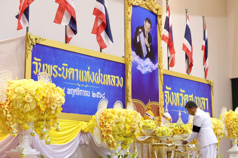 โดยมีนายรัฐศาสตร์ ชิดชู ผู้ว่าราชการจังหวัดสงขลา เป็นประธานในพิธี พร้อมด้วยข้าราชการระดับสูง ตุลาการ ศาล ทหาร ตำรวจ รองนายกเหล่ากาชาดจังหวัดสงขลา ส่วนราชการ ผู้บริหารองค์กรปกครองส่วนท้องถิ่น และเจ้าหน้าที่จากทุกภาคส่วนเข้าร่วม เพื่อแสดงความจงรักภักดีและน้อมสำนึกในพระมหากรุณาธิคุณอย่างหาที่สุดมิได้ ณ หอประชุมจังหวัดสงขลา