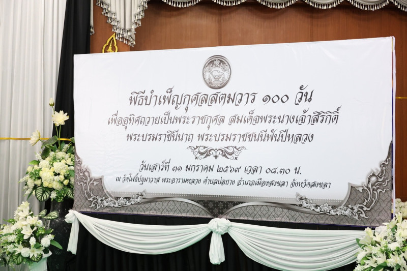 วันที่ 31 มกราคม 2569 เวลา 9.00 น. นางสาวสุนทรี แสงจันทร์ รักษาราชการผู้อำนวยการศูนย์ถ่ายทอดเทคโนโลยีการสหกรณ์ที่ 18 มอบหมายให้นางสาวสดใส พลสังข์ นักวิชาการสหกรณ์ชำนาญการ และนางสาวสุฑาทิพย์ ธรรมชาติ นักทรัพยากรบุคคล เข้าร่วมพิธีบำเพ็ญกุศลในวาระครบ 100 วัน (สตมวาร) เพื่ออุทิศถวายเป็นพระราชกุศลแด่ สมเด็จพระนางเจ้าสิริกิติ์ พระบรมราชินีนาถ พระบรมราชชนนีพันปีหลวง ณ วัดโพธิ์ปฐมาวาส พระอารามหลวง ตำบลบ่อยาง อำเภอเมือง จังหวัดสงขลา โดยนายรัฐศาสตร์ ชิดชู ผู้ว่าราชการจังหวัดสงขลา เป็นประธานประกอบพิธี ในการนี้ พระเทพวชิรสุตาภรณ์ เจ้าคณะจังหวัดสงขลา เจ้าอาวาสวัดโคกสมานคุณ พระอารามหลวง เป็นประธานฝ่ายสงฆ์ โดยมี หัวหน้าส่วนราชการ ศาล ทหาร ตำรวจ องค์กรปกครองส่วนท้องถิ่น ภาคเอกชน นักเรียน นักศึกษา และประชาชนชาวสงขลา เข้าร่วมพิธี เพื่อแสดงความอาลัยและสำนึกในพระมหากรุณาธิคุณอันหาที่สุดมิได้